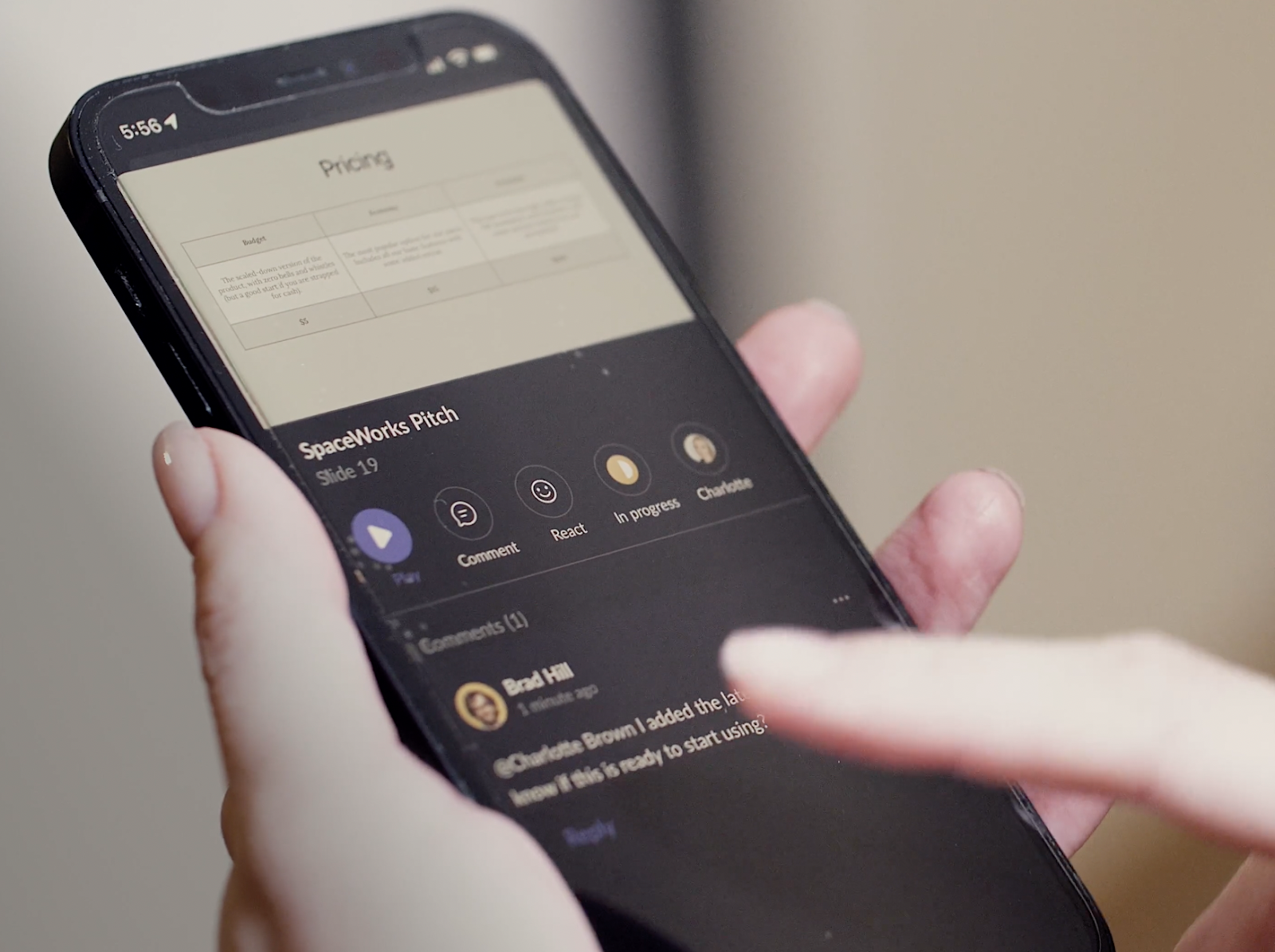 Clickable updates help users get more done. Users can click any update and jump right to the deck. From there, they can reply to comments, hand off tasks, or change the deck status.