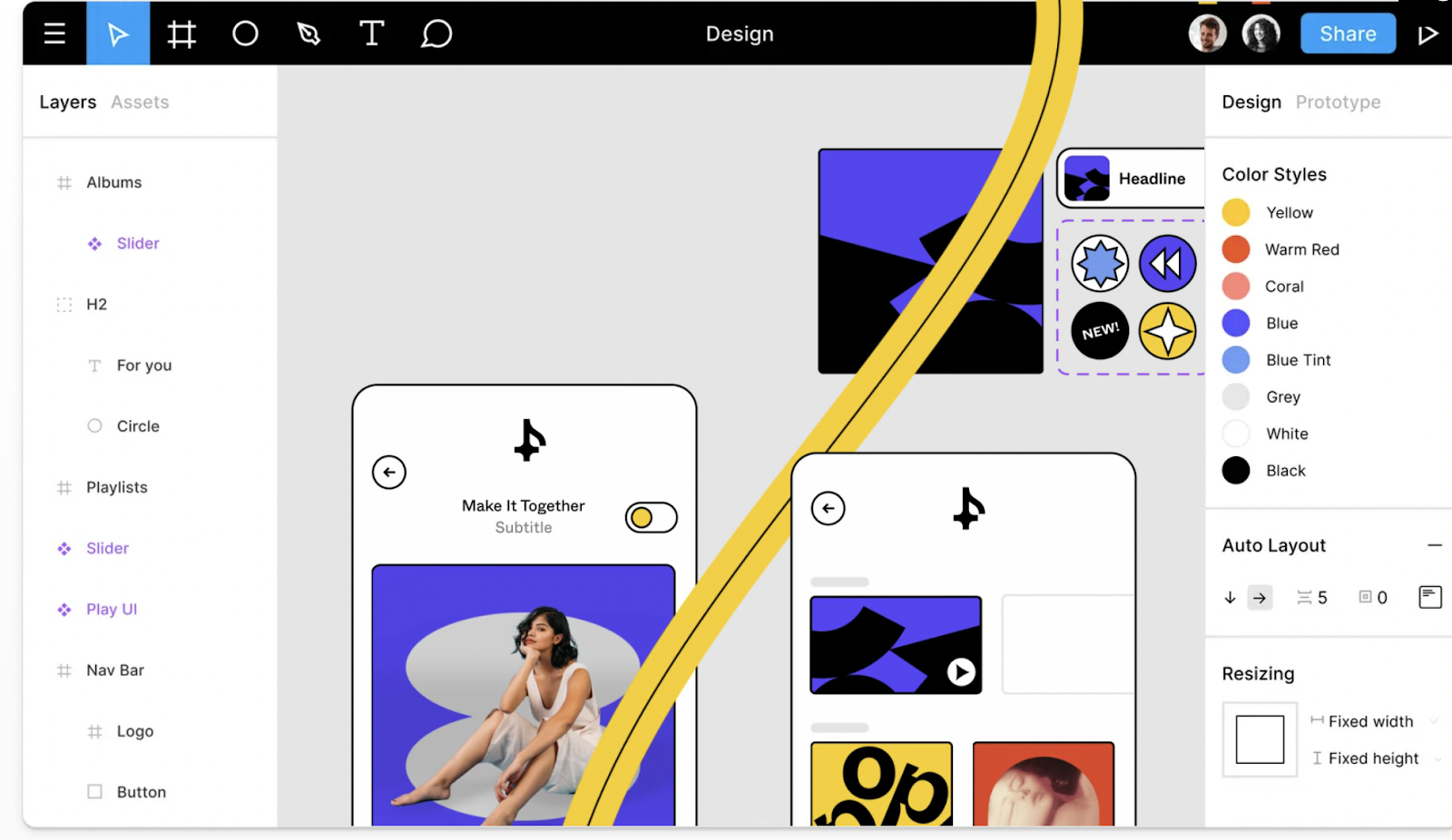 Figma is a browser-based design tool built for teams. People can work on the same Figma file in real time, much like a Google Doc. This helps teams build, share, test, and ship designs fast.