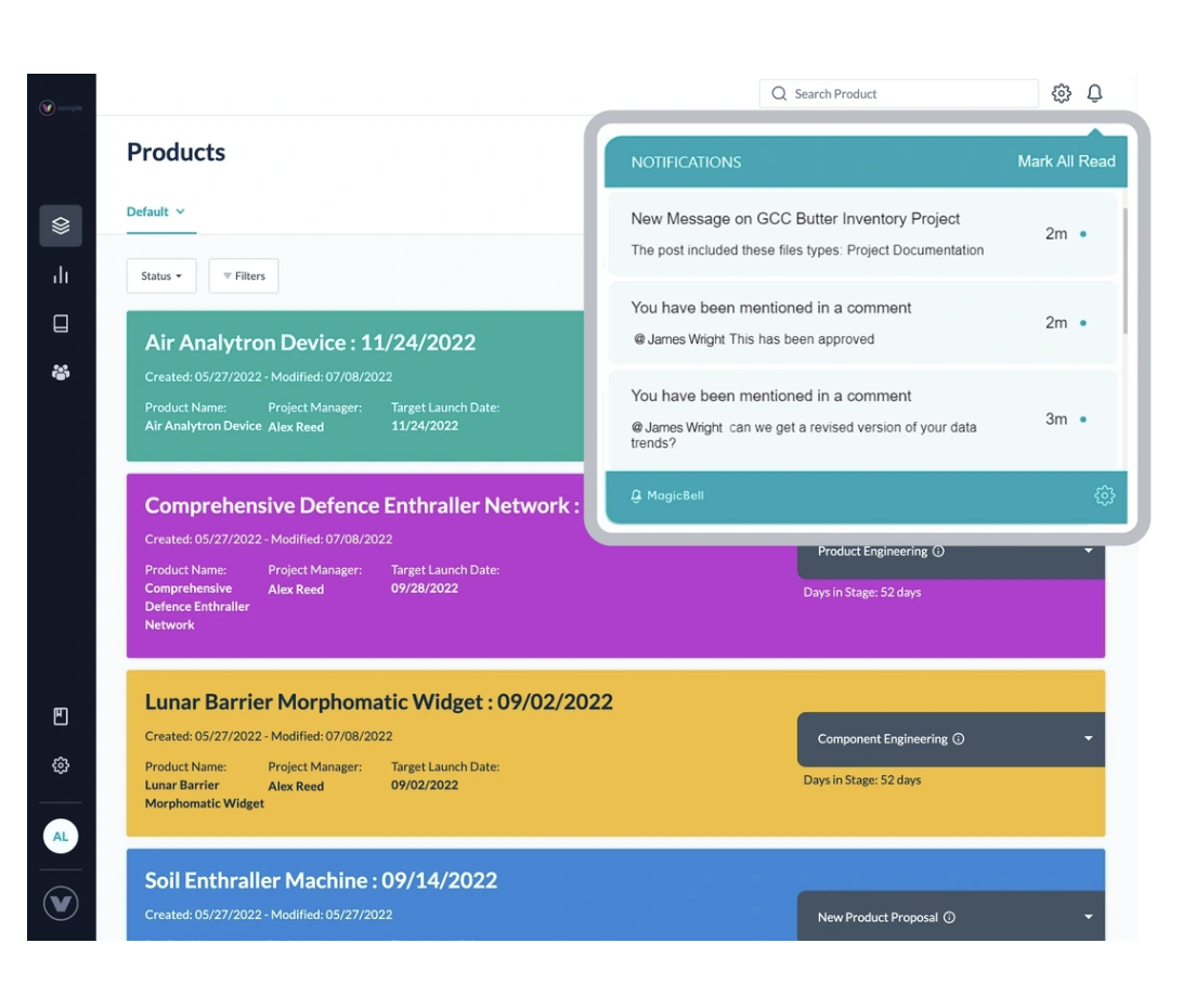 Vsimple uses MagicBell's API to build a smart alert system. Its alerts tell team members about status changes, sign-offs, and shipping details. This helps users stay on top of their work.