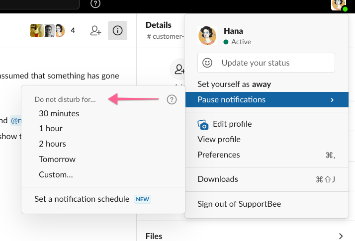 The next thing they check is if the user has enabled DnD. Users can enable it at any time or setup a schedule to toggle DnD automatically.