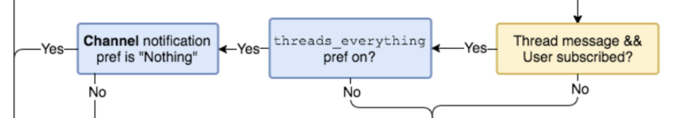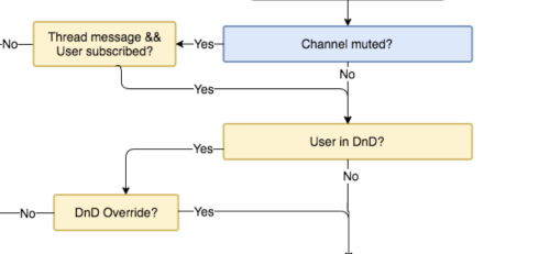 If you have chosen not to be notified of anything, it's a straight line to the big RED NO. However, if you have chosen to be notified, based on your preferences, you may lead down to the big GREEN YES. However, you may reach here on the desktop or on the mobile. In the Flowchart, they talk about checking for "past mobile push timing threshold", but I wasn't able to find this as an option in their UI. Perhaps this is something to check for in their backend without it being a user-adjustable property.