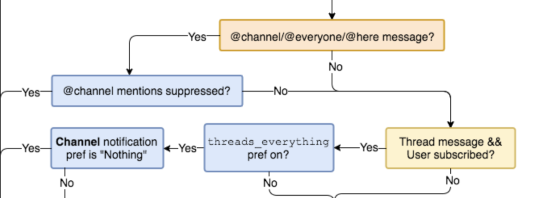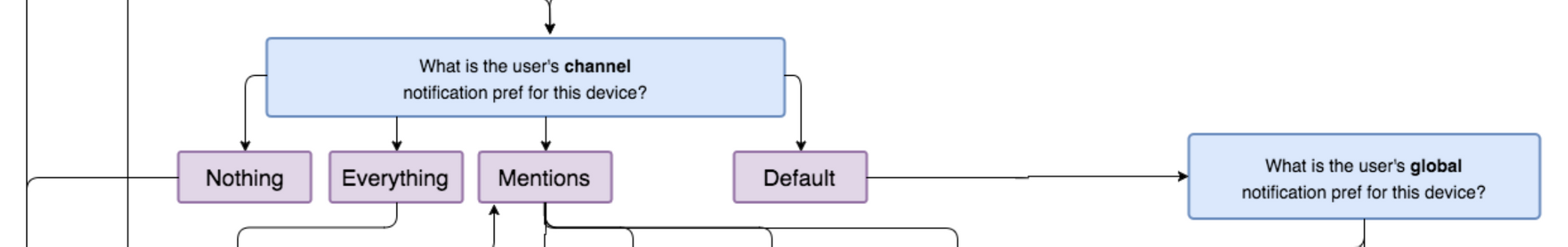 Assuming that the notification candidate has made it so far (and so have you!), Slack checks for mobile-specific notification preference for this channel. If none has been set up, they check if you have a preference globally.
