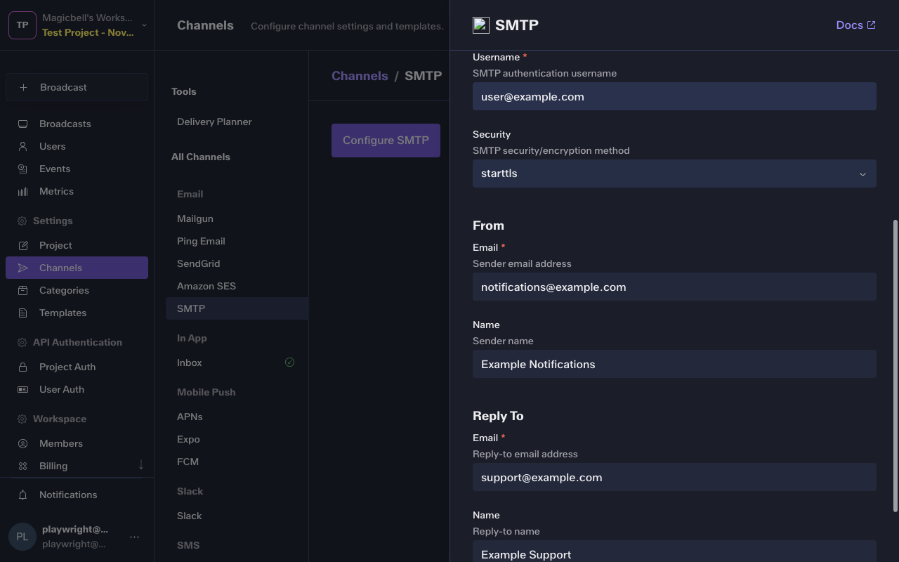 The easiest way to configure this integration is through the MagicBell dashboard: